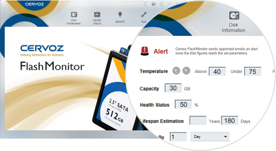 On the software front, Cervoz presents the proprietary Cervoz FlashMonitor, free to download with the purchase of any of our storage products. The monitoring system shows in real time how Cervoz storage modules are doing, with temperature being one of the data it tracks.
